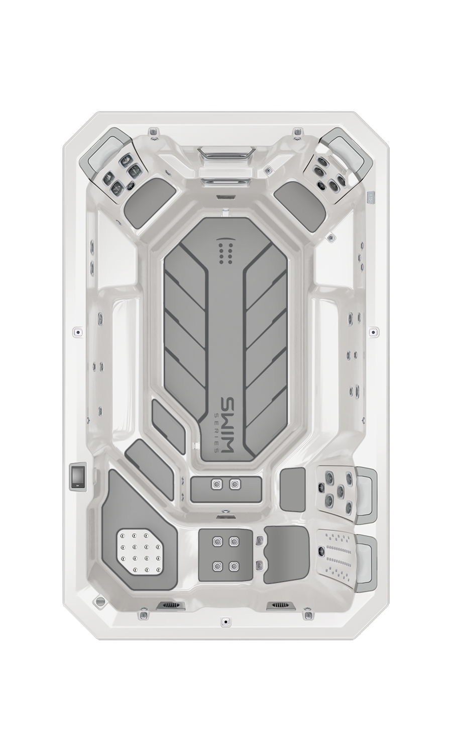 Você não precisa ser um nadador profissional para usar o sistema atual. Bullfrog Spas Swim Series possui um sistema atual que torna a natação em um spa mais fácil. Estes spas são projetados para ajudá-lo a manter-se horizontal e na sua raia para treinos eficazes.